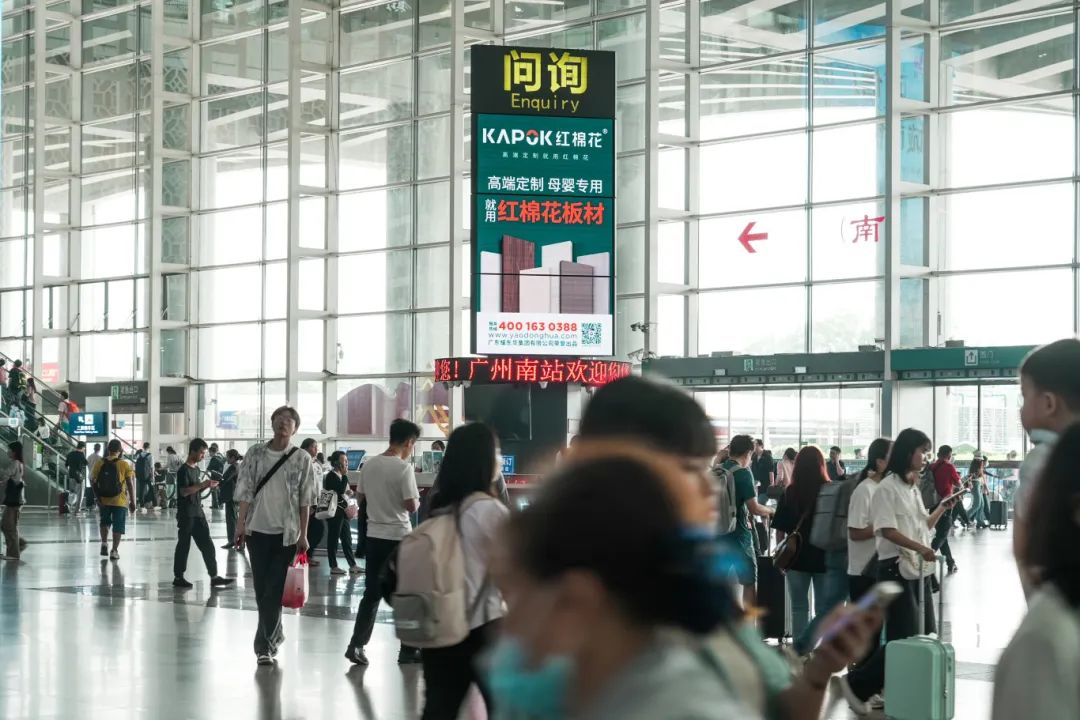 本次红棉花首先在佛山西站、广州南站、深圳北站以及长沙南站等四个高铁站点投放广告,品牌曝光覆盖了华南、珠三角、中部等多个地区,实现了品牌在全国范围内的广泛传播。
