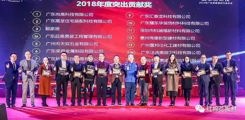红棉花板材甄选优质原材,引进德国温康纳双面同步对纹饰面人造板自动压贴生产线,聘请意大利知名设计师参与产品设计,用极致的匠心和创新,推动产品高质量发展,本次荣获“2018年度装饰企业优选品牌”、“2018年度突出贡献奖”,实属众望所归。