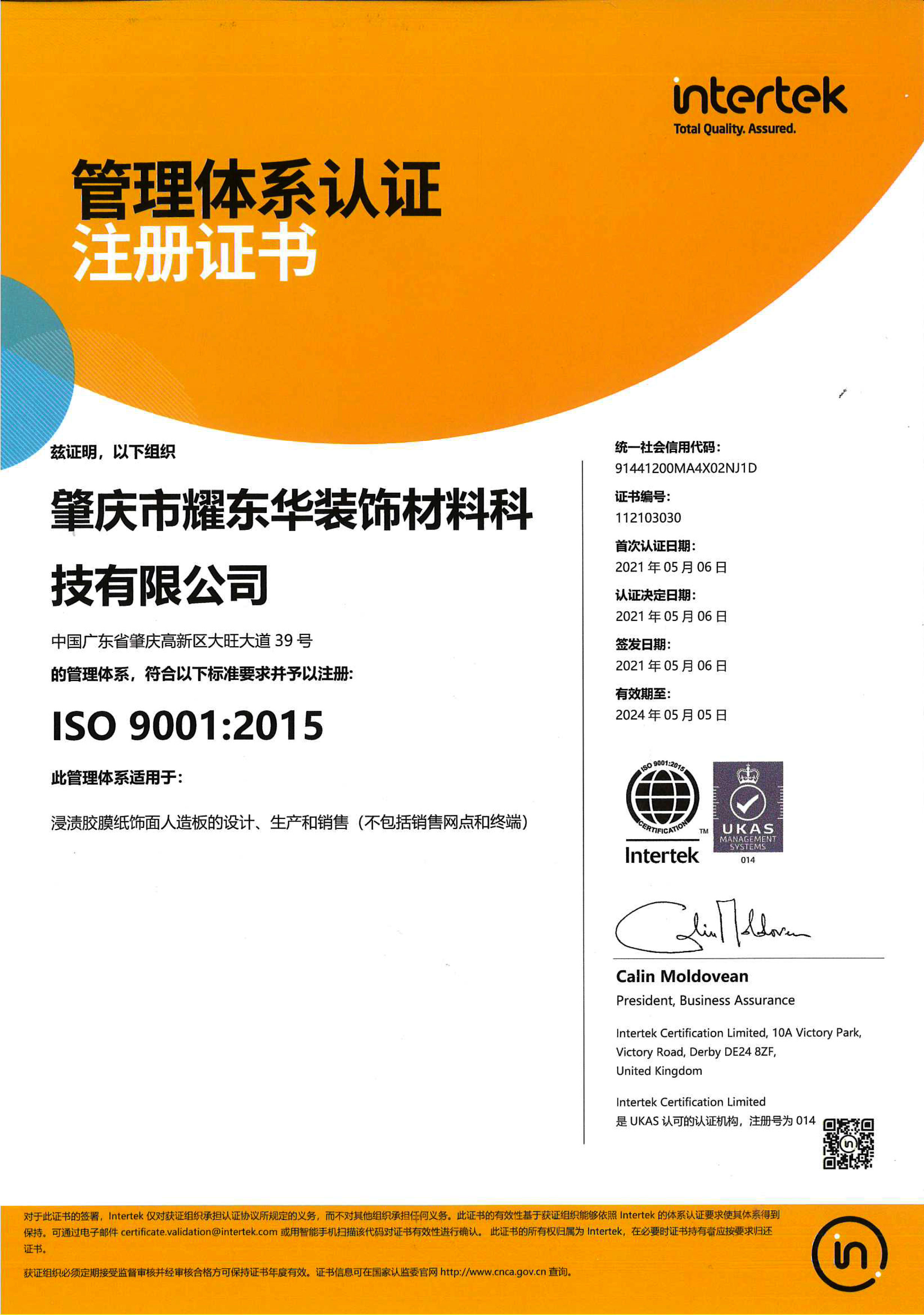 肇庆市开云网ISO90012015-证书-英文版